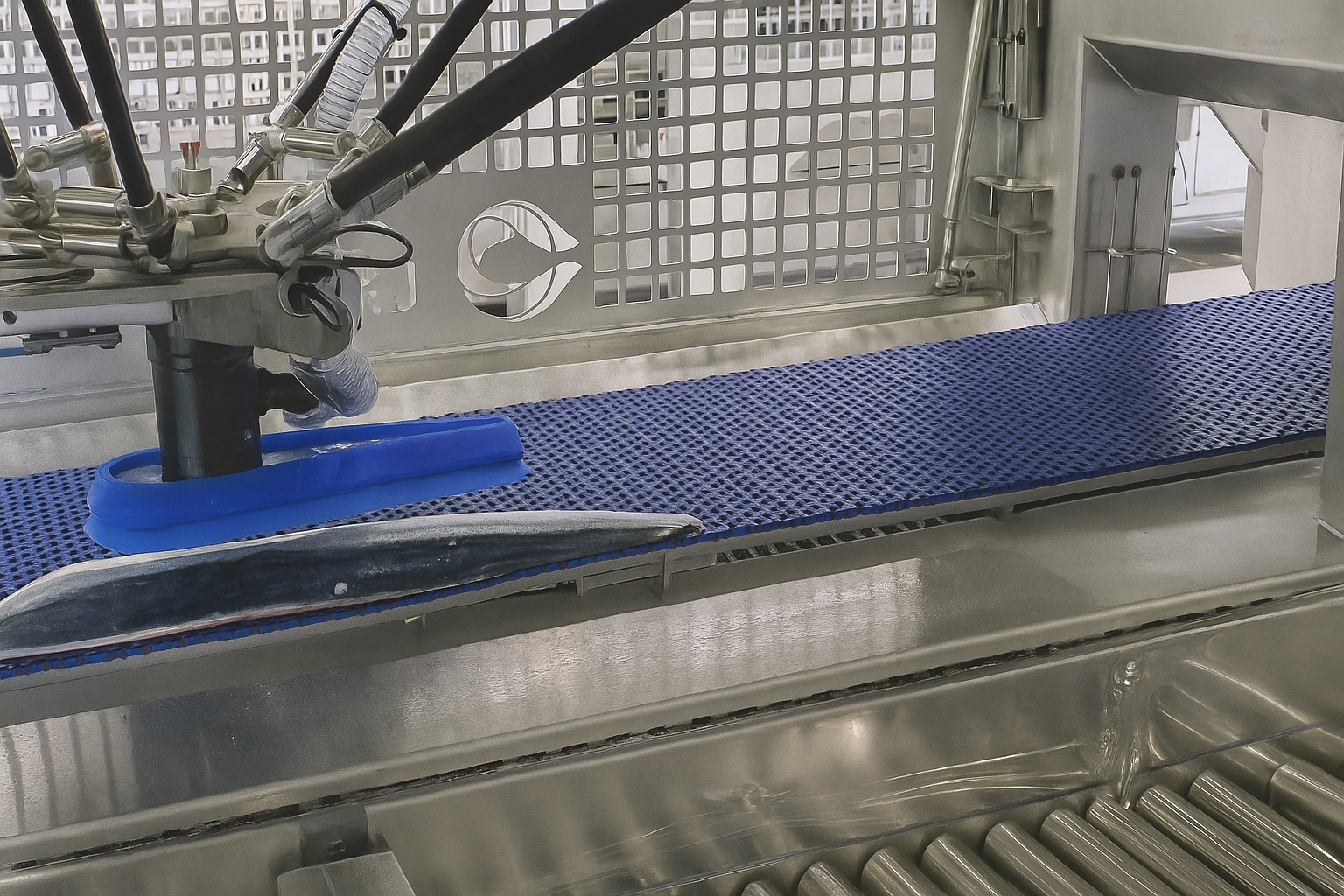 В процессе паллетирования кобот перекладывает изделия с конвейера на поддон по заданному алгоритму. Под каждый товар подбирается определенный захват. Поддерживается настройка различных схем укладки для разных типов упаковки.