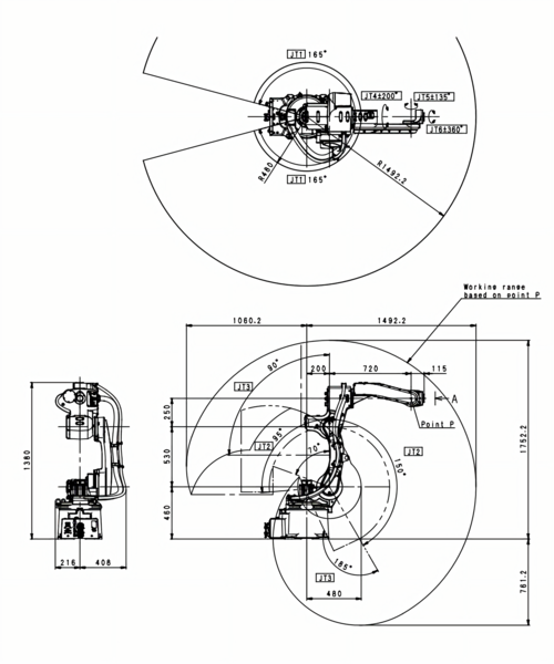 Робот для дуговой сварки BA013N обладает максимальным радиусом действия 1492 мм и полым запястьем, позволяющим прокладывать кабели и шланги внутри конструкции.