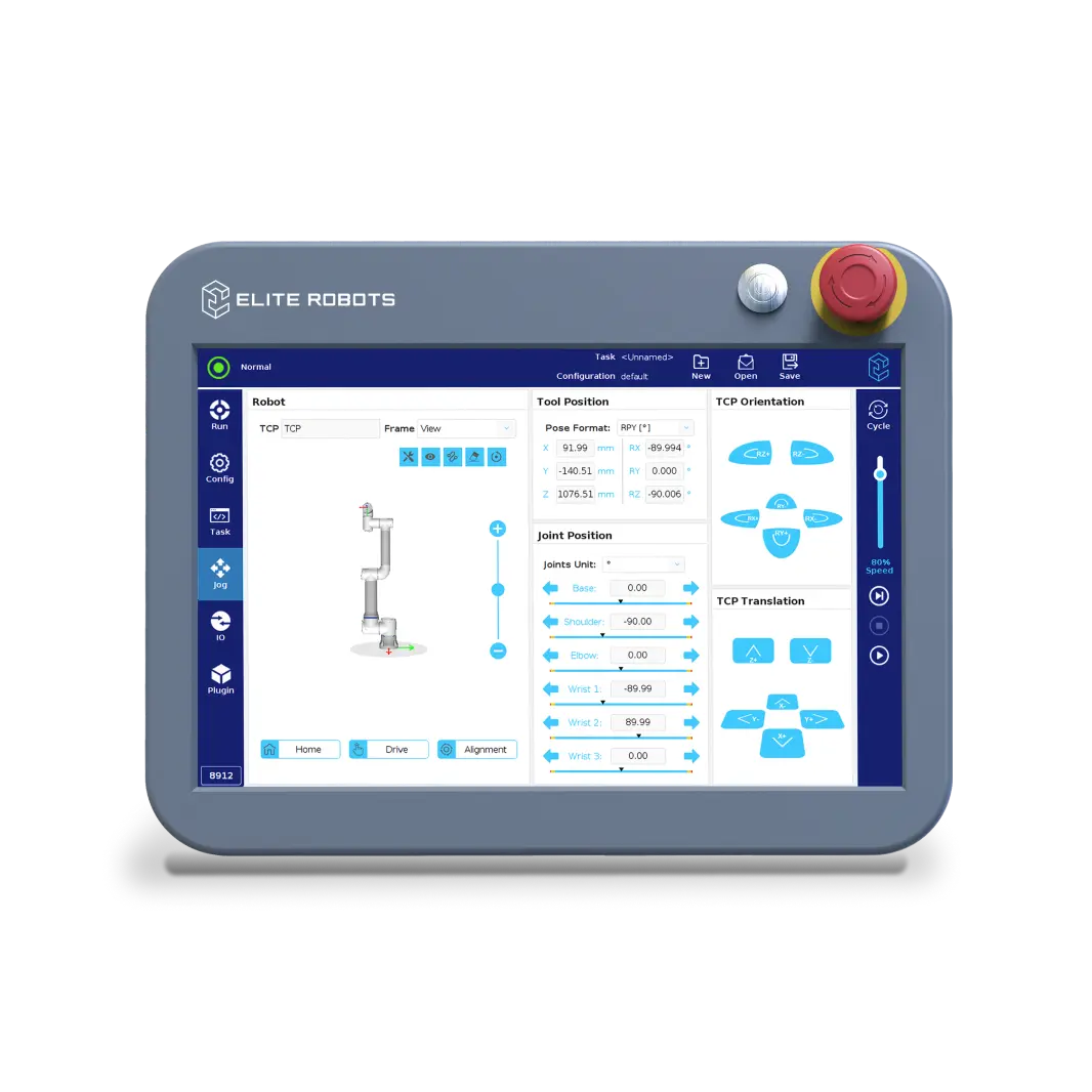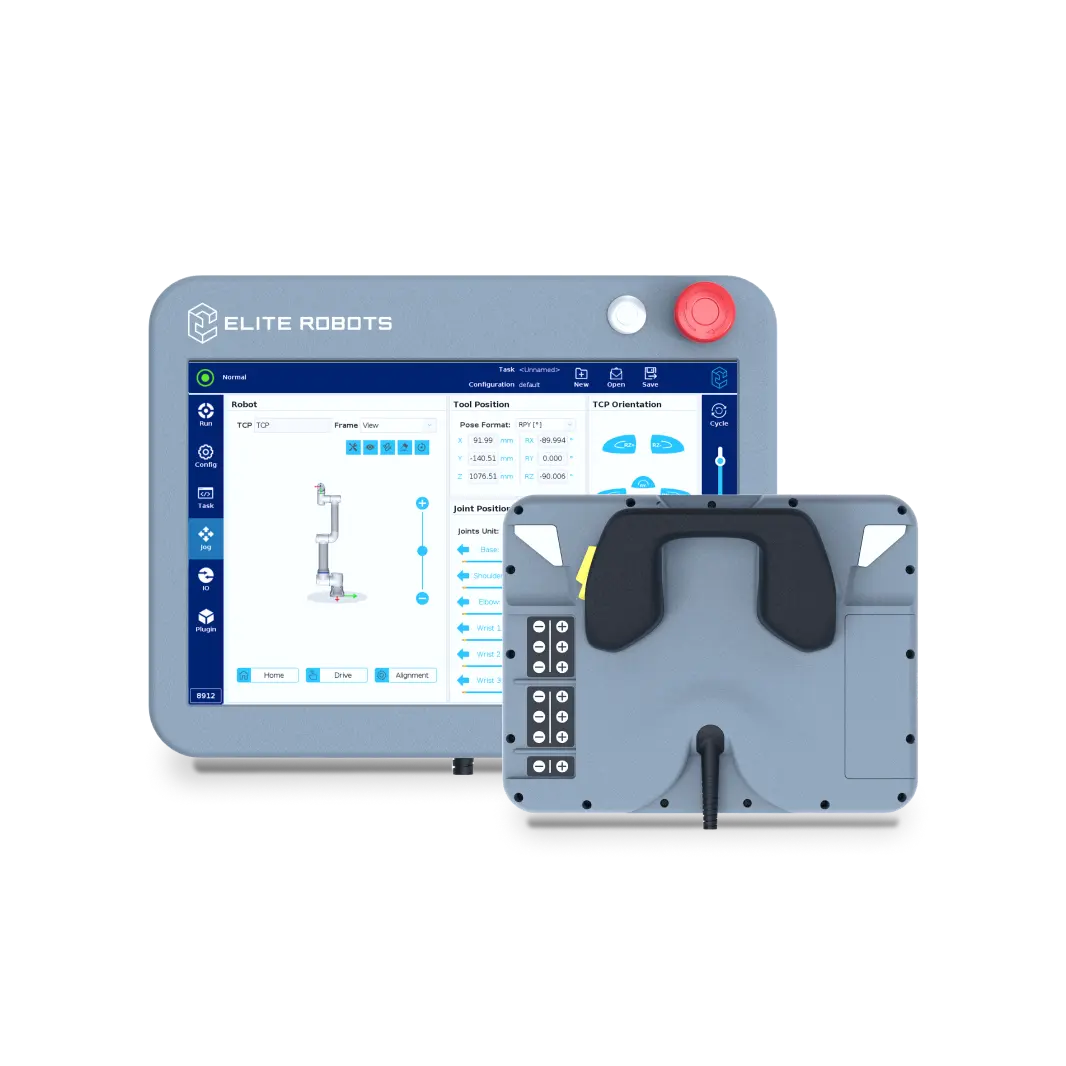 В стандартный комплект поставки кобота входит базовая панель управления ERP400 со степенью защиты IP54, 12,1-дюймовым сенсорным экраном и кабелем длиной 5,5 м. Дополнительно можно приобрести панель управления ERP400S с трёхрежимной кнопкой включения.
