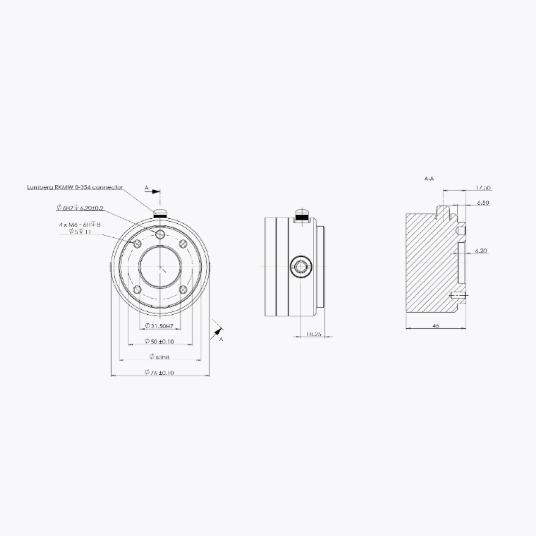 Коллаборативный робот S66 (вес 20 кг; общая длина кобота 1120 мм; площадь опоры Ø150 мм). Стандартный класс защиты IP65, с возможностью модернизации до IP68. В комплект входит стандартный кабель длиной 5,5 м (также доступны опциональные длины кабеля: 1,5 м; 3 м; 8 м; 10 м).