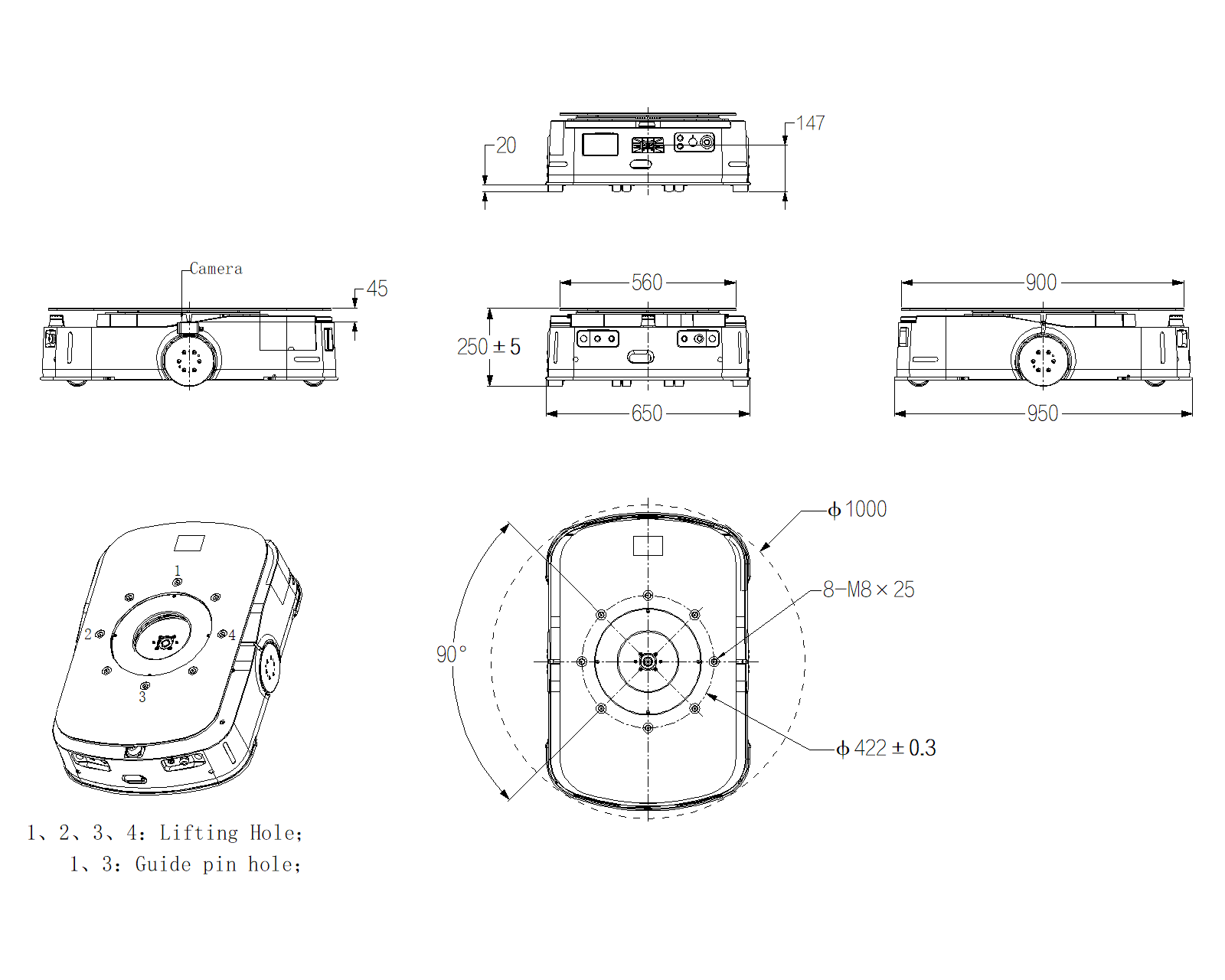 Диаметр вращения 1000 мм