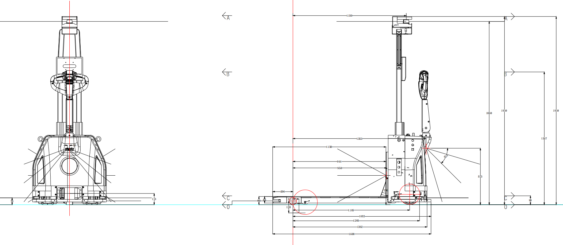 Габариты 1608 мм × 830 мм × 1910 мм