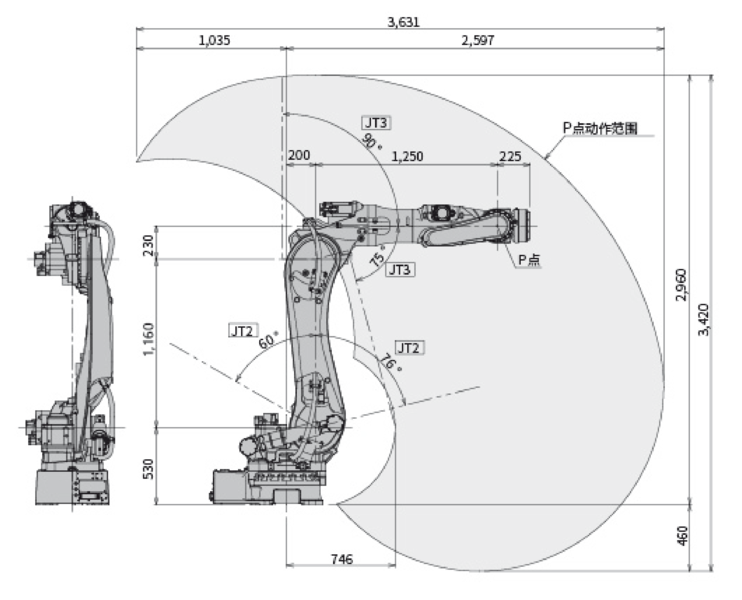 Рука вперед-назад (JT2) +76 - −60° 115°/с