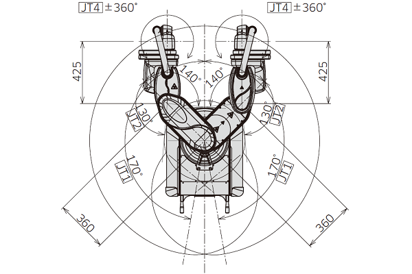 Рука вращение (JT2) -130 - +140° -140 - +130°