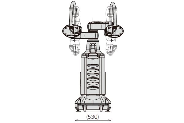 Коллаборативный двурукий робот для безопасной совместной работы с человеком. Вертикальный ход модели в 550 мм позволяет выполнять широкий спектр задач, например упаковки высоких коробок.