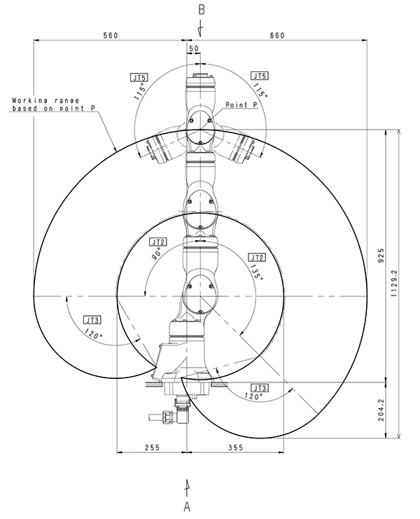 Рука вперед-назад (JT2) ±135 - −95° 130 °/с
