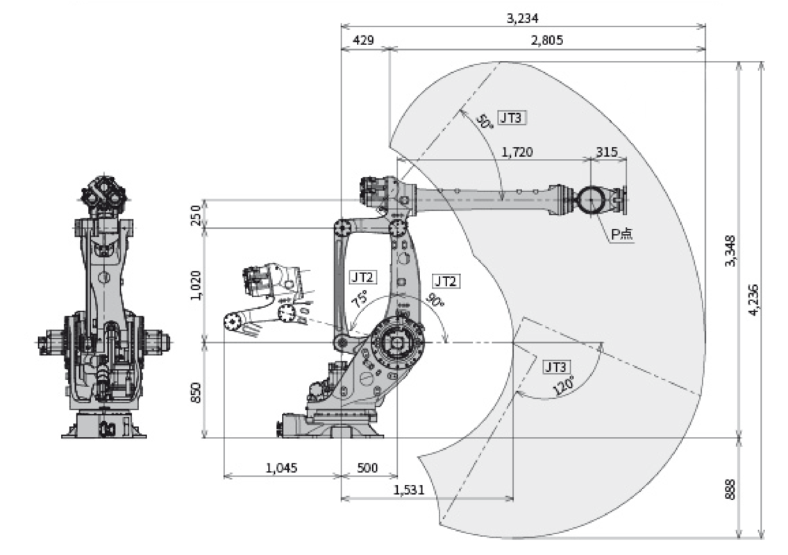 Kawasaki MXP360L — это 6‑осевой робот M‑серии для тяжёлых нагрузок.