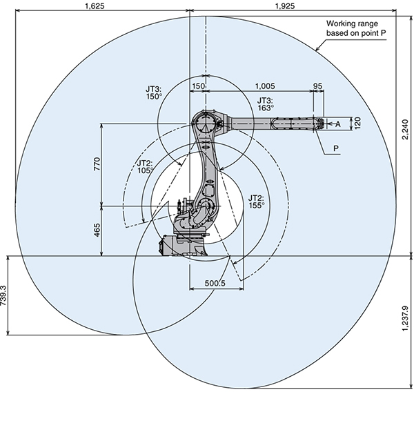 Рука вверх-вниз (JT3) ±150 - −163° 210 °/с.