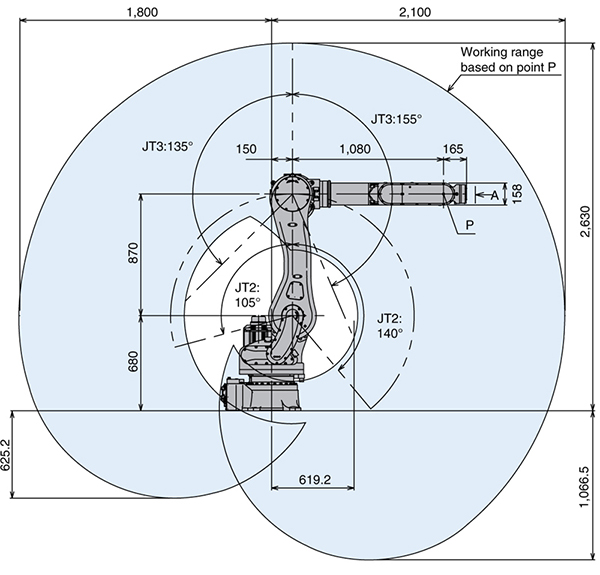 Рука вверх-вниз (JT3) ±135 - −155° 160 °/с